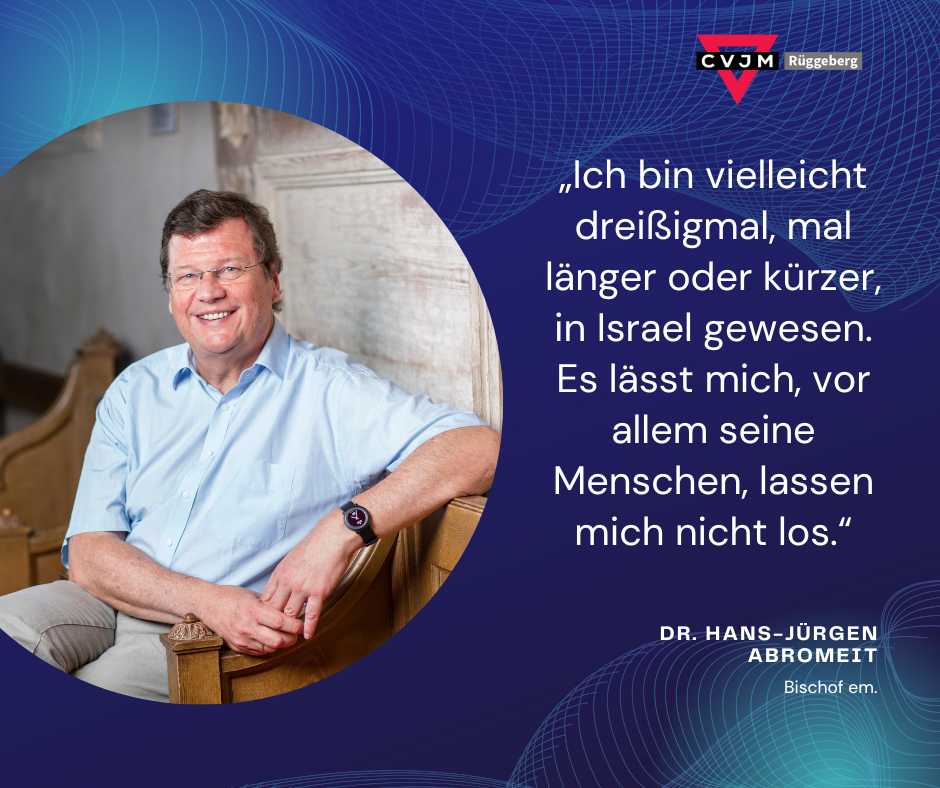 Hans-Jürgen Abromeit war vor über 50 Jahren aktiver Mitarbeiter im CVJM Rüggeberg. Zu jener Zeit als Schüler wohnte er in Rüggeberg, ging aber in Gevelsberg zum Gymnasium. Über seine Schulkontakte motivierte er Mitschüler, doch auch einmal im Rüggeberger CVJM vorbeizuschauen, vor allem dann, wenn dort interessante Themen diskutiert wurden. n den frühen siebziger Jahren des letzten Jahrhunderts gab es viele heiße Themen, über die man engagiert und kontrovers diskutierte – zum Beispiel über das Werk des dänischen Philosophen und Theologen Soren Kierkegaard oder über Rudolf Bultmann, den Verfechter der liberalen Theologie, und vor allem auch über Dietrich Bonhoeffer und über Israel.